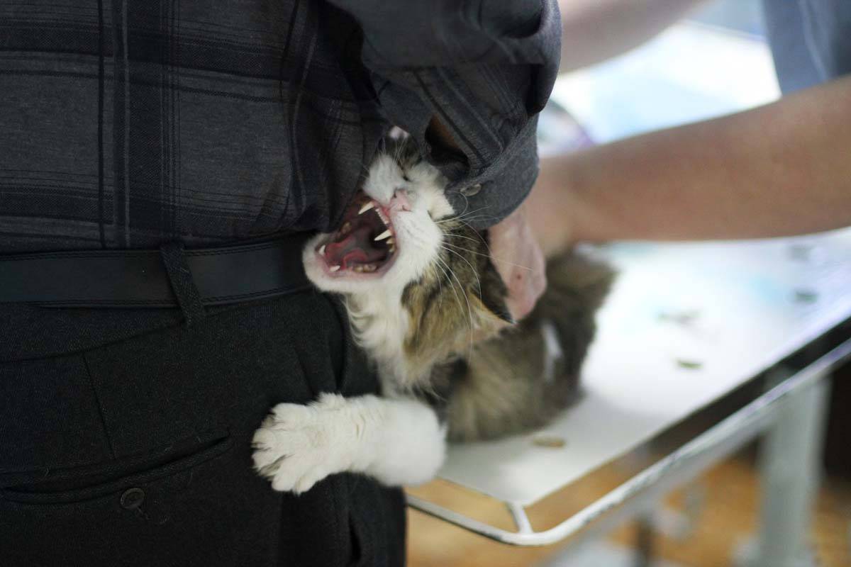 Один из советов, которые можно найти в интернете – взять кота за загривок, поднять повыше и хорошенько потрясти. Ну, чтобы знал свое место. Некоторые могут даже пару раз шлепнуть животное – видимо, для закрепления результата. Так вот, если вам дадут подобные советы, не слушайте.