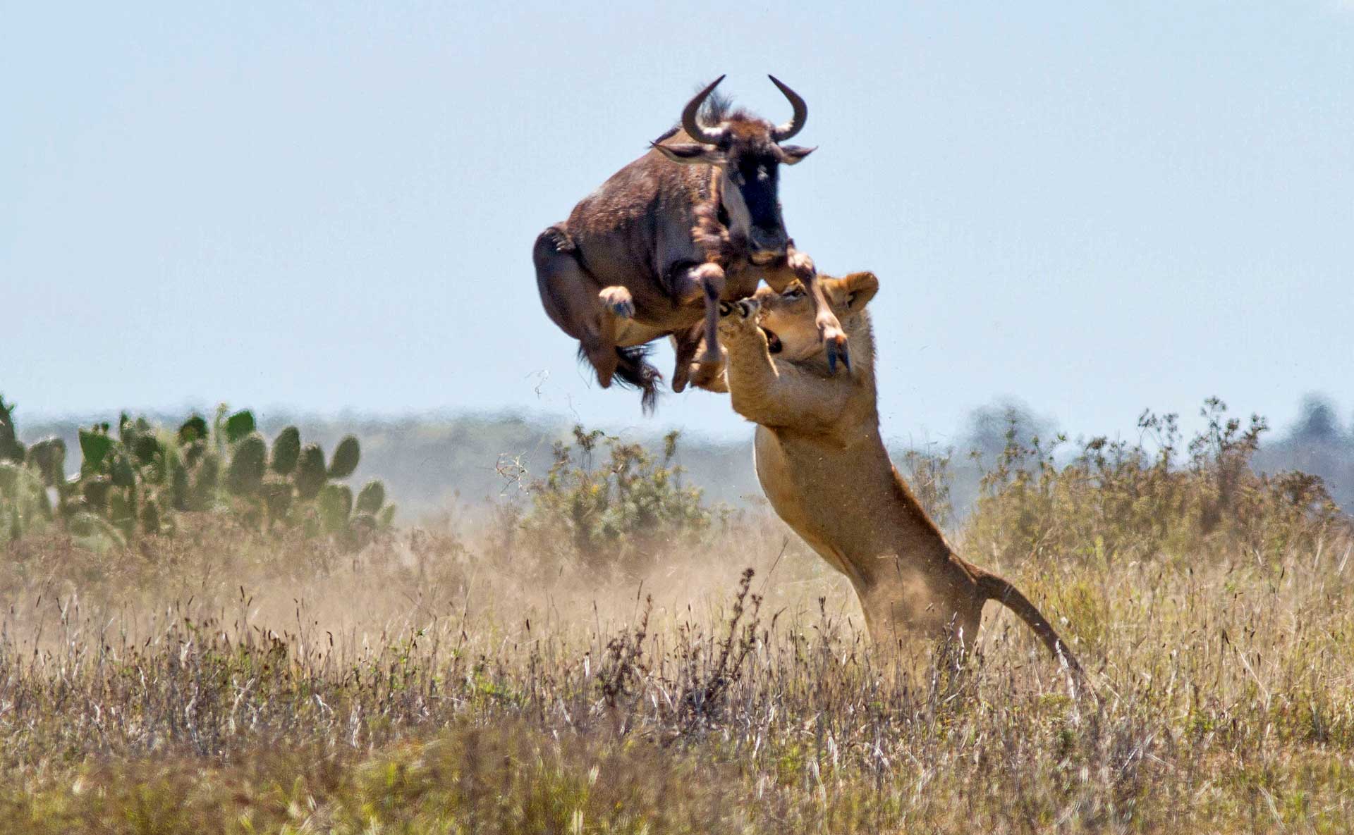 • Взрослые животные могут не пить по несколько месяцев, обычно им хватает влаги, содержащейся в пище. Охотятся в основном львицы, но и львы им помогают. Во время погони за жертвой кошки могут достигать скорости в 80 км/ч, однако долго бежать с такой скоростью они не могут. Прыгают львы тоже на впечатляющее расстояние — до 11 метров.
