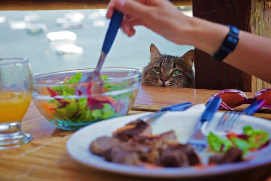 Немаловажно и то, что кошка чаще всего и сама ест на кухне, а значит, всякий раз соблазняется продегустировать хозяйские блюда, которые аппетитно лежат на тарелках или в салатницах