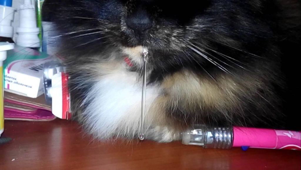 - Реакция на лекарства. Иногда мы обрабатываем шерсть кошек средствами от блох. Если кошка налижется шерсти, обработанной лекарственными препаратами, то может возникнуть обильное выделение слюны.