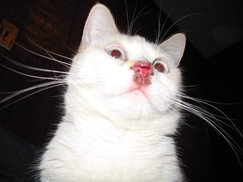 - Если насморк наблюдается у кота долго, не сопровождается ли он изменением формы носа или же головы кота? Дело в том, что при грибковых ринитах нередко поражается костная ткань, которая деградирует и разрушается под действием патогенных грибов. Учтите, что атрофический ринит «грибного» происхождения наносит непоправимый вред здоровью животного.
