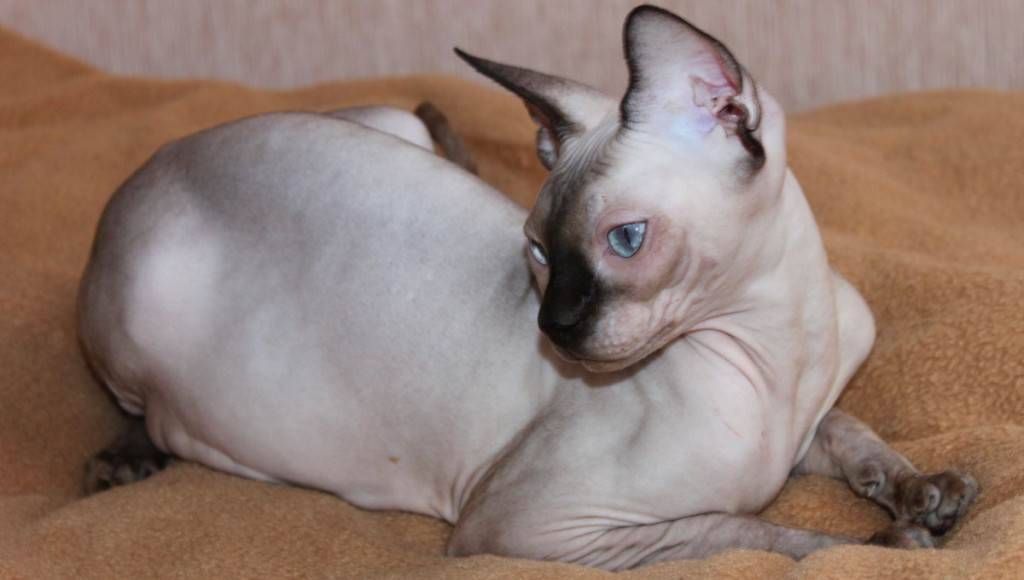- Петерболд – результат скрещивания донского сфинкса и ориентальной породы. Для него характерно отсутствие какой-либо растительности. Животное проявило себя как спокойное, адекватное, дружелюбное и без проблем находящее общий язык с людьми, в том числе и с детьми.