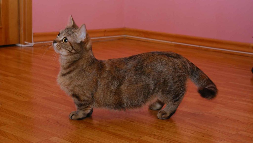 Отличие этой породы – она появилась в ходе естественной мутации. Миниатюрные животные, любят сидеть на задних лапках. Вес не более 4 кг. Внимательно следите за питанием, кот расположен к ожирению.