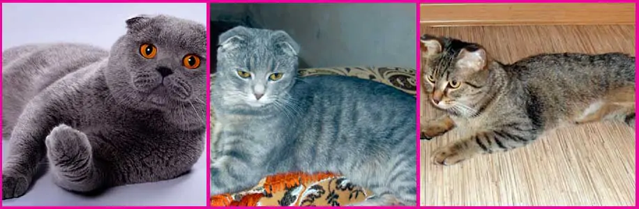 Слева — нормальная шотландская кошка, в центре — стройная, справа — кошка с истощением