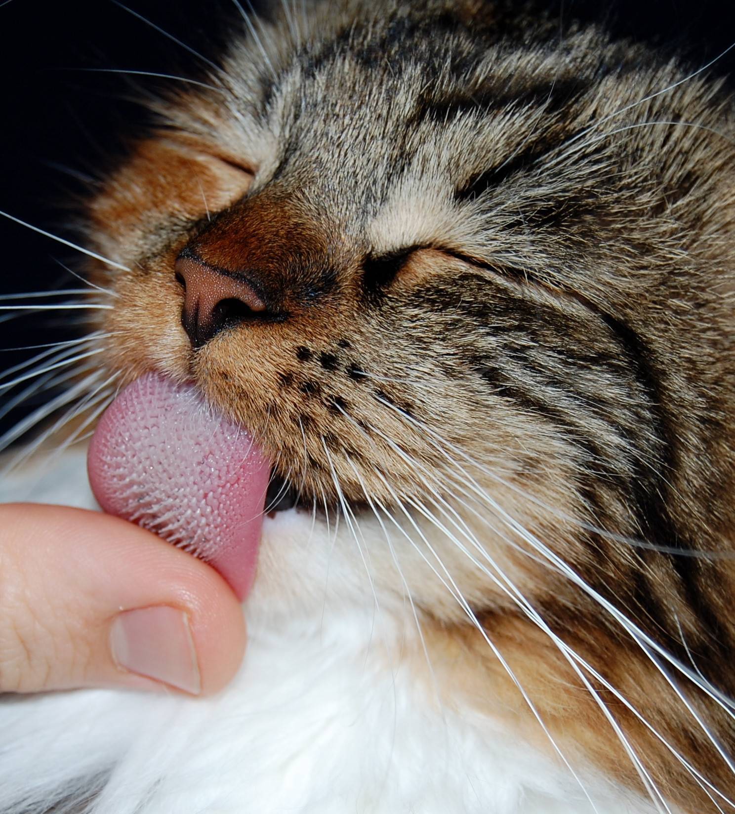 Английские ученые считают, что высунутый кончик языка вовсе не свидетельствует о расслабленности. Наоборот, это – признак агрессии. Особенно если при этом животное подергивает хвостом. Другие объяснения, почему кот высовывает кончик языка: