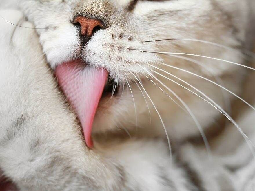Как и собаки, коты часто высовывают язык, когда им очень жарко. Если вы увидели, что кошка высунула язычок, начала часто дышать и находится на солнце, перенесите ее в прохладное место. За счет пота, который выделяется через ротовую полость, животное пытается урегулировать тепловой обмен. Но если у него это не выйдет, оно может получить тепловой удар.