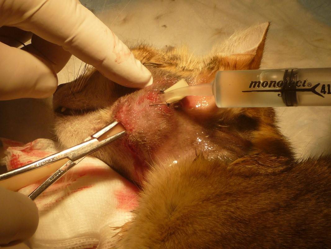 В осложненных случаях в клинических условиях проводят хирургическое вмешательство под общим наркозом. Делают вскрытие патологического очага. Воспаленный участок тела животных освобождается от гноя, обрабатывается антисептиками, при необходимости устанавливается дренажная трубка. Затем назначается курс лечения антибактериальными средствами.