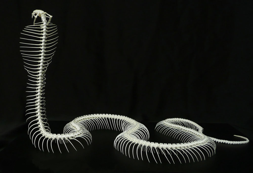 Скелет королевской кобры по большей части такой же, как и у всех змей: выделяются позвоночник, ребра и череп. Скелет конечностей отсутствует. Однако есть одна особенность: ребра шейного и грудного отделов более длинные и подвижно связаны с позвонками. Это основа капюшона. Ребра приводятся в движение специальными межреберными мышцами.