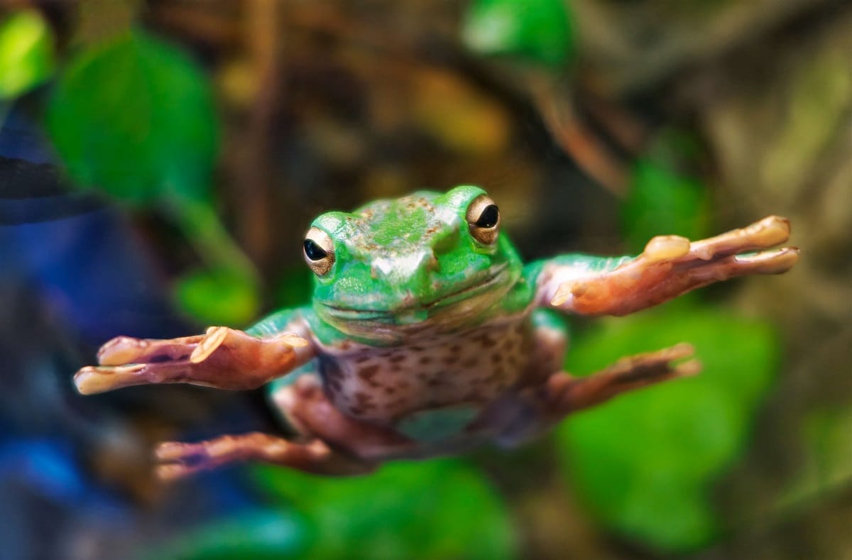 Эта лягушка действительно очень мила, о чем можно судить по фото. Однако ее красивая и яркая окраска не сулит ничего хорошего: ее яда достаточно, чтобы убить даже самого крупного естественного хищника, известны случаи, когда от этого яда умирали даже люди. Однако некоторые храбрецы заводят этих созданий дома в качестве домашних животных. Как это возможно, спросите вы? К счастью, в неволе лягушки теряют свои ядовитые свойства, потому что не получают особой пищи, чтобы вырабатывать яд, да он им и ни к чему, так как в аквариуме их никто не обидит. Лягушка сохраняет свою чудесную внешность, но теряет яд. Это относится ко всем лягушкам в нашем списке.