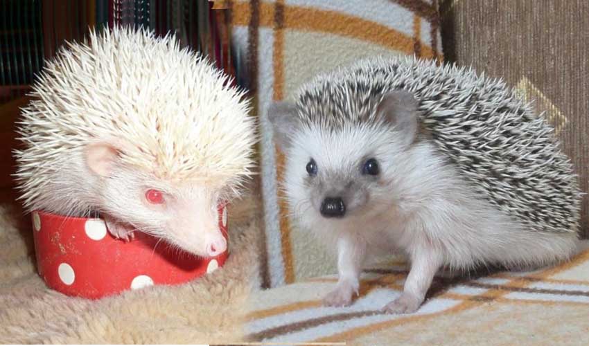 И последняя разновидность окраса – полный альбинос. У таких ёжиков белоснежные иголки, алые глаза и отсутствует маска. Встречаются такие белые ежи довольно редко.