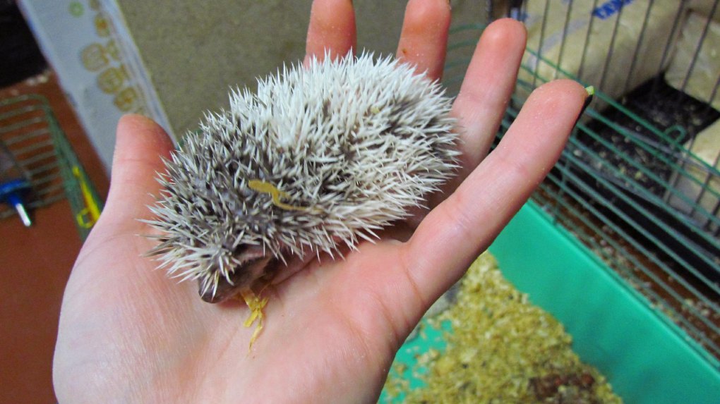Млекопитающее может родиться альбиносом. У животных с таким ненормальным окрасом белые иглы, розовая кожа и алые глаза.