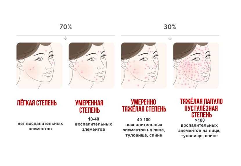 Лечение угревой сыпи зависит от характера тяжести течения заболевания: