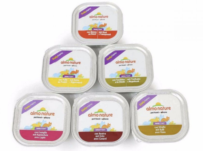 Специалисты отмечают, что влажное питание и консервы от «Almo Nature» — более качественны. Консервы итальянской компании бывают в следующих вариациях: