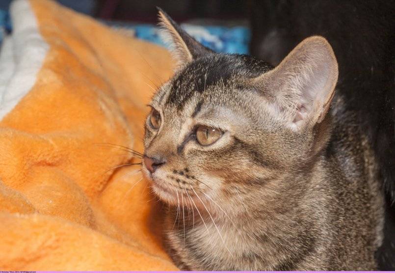 Азиатская кошка табби, будет терпеливо дожидаться, когда ей смогут уделить внимание