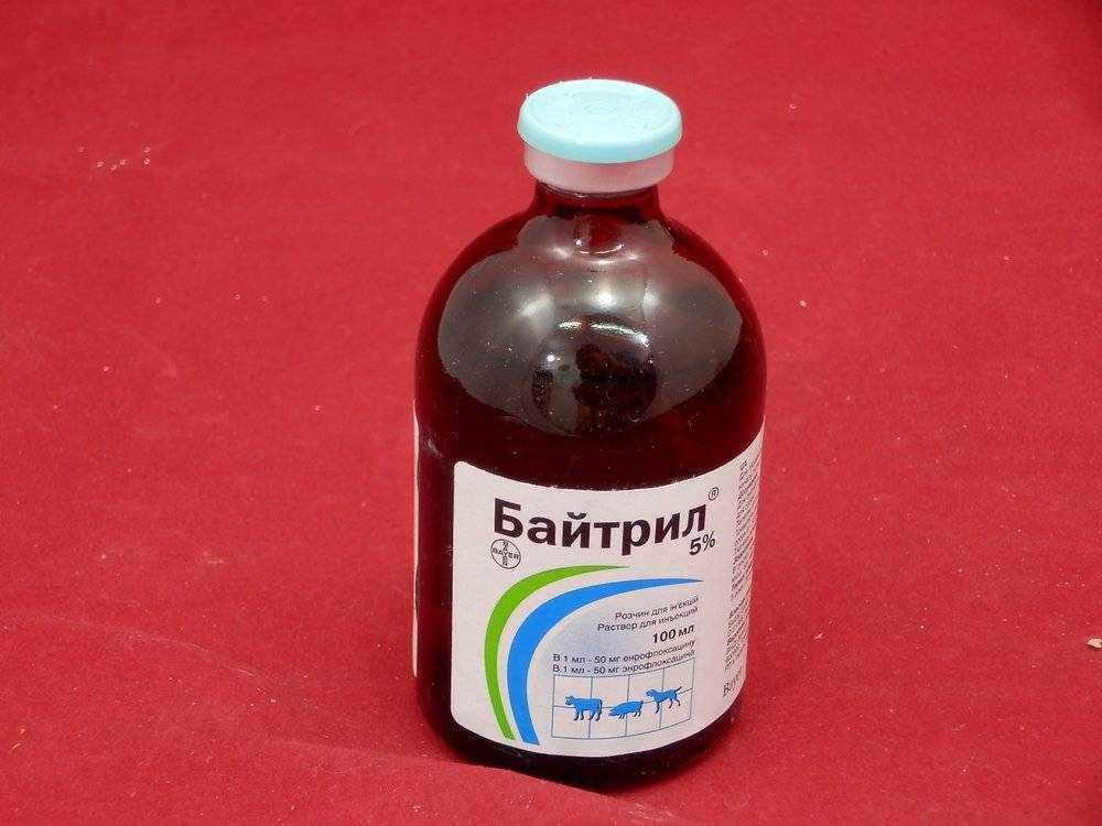 Допустимо использование и препарата Байтрил 5%, его применяют при быстром прогрессировании болезни. Вводят внутрь: 5 мг на 1 кг массы. Укол делают в заднюю часть бедра. Лечение длится 5 суток.