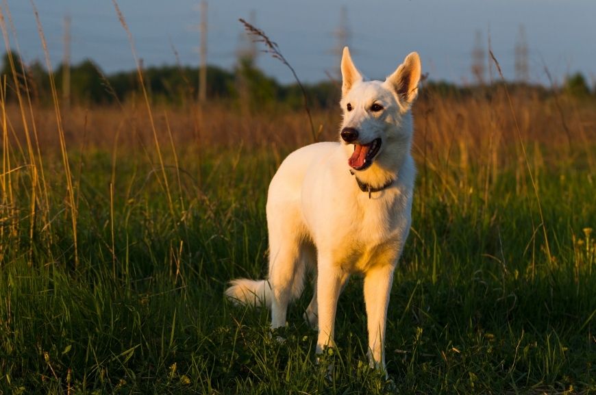 Белая швейцарская овчарка – статная собака с подтянутым животом, развитым корпусом и грациозным внешним видом. Изгибы тела плавные, а её длина больше чем высота.