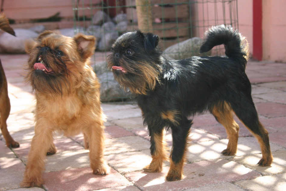 - бельгийский гриффон отличается окрасом — они могут быть черными, черно-подпалыми, черно-рыжими и микстовыми.