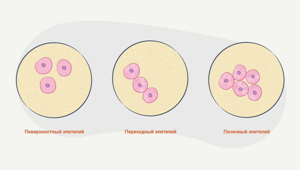 Почечный эпителий — в норме не присутствует, обнаруживается при заболеваниях почек.