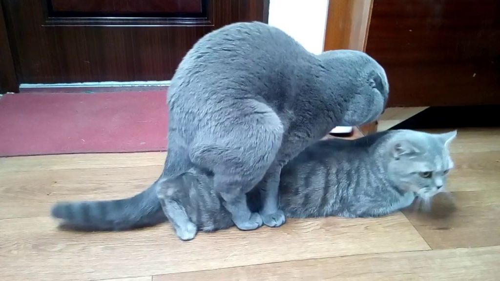 На то, что кошка при встрече готова к половому акту, указывают заигрывания с сексуальным партнером. Хозяевам следует быть начеку, потому что во время брачных игр животные могут травмироваться.