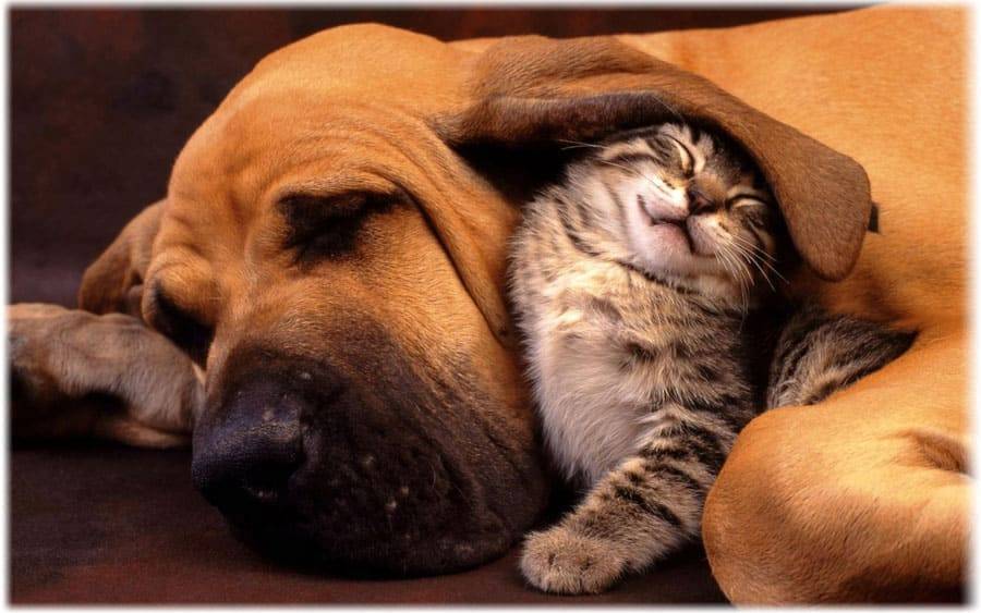 Настоящая дружба – фото бладхаунд и кот спят вместе