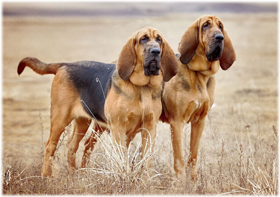Псовина бладхаундов довольно плотная, имеет небольшую длину. На ушах она мягкая и короткая, на остальных частях тела – немного длиннее и грубее.