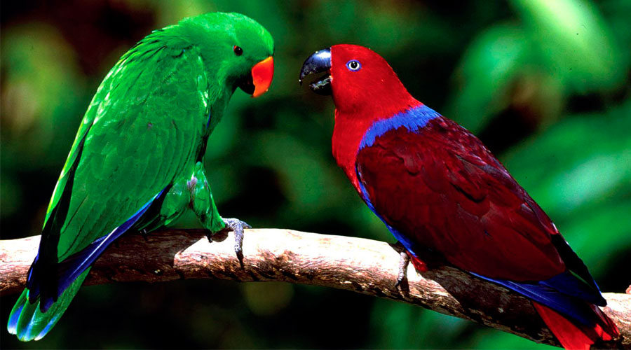 Из-за таких ярких отличий, долгое время орнитологи были уверены, что зеленый эклектус и красный — это разные виды попугаев. И только наблюдение за благородными птицами в их брачный период дало понять, что это представители одного и того же вида – самец и самка.