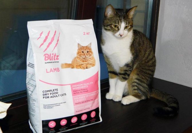 Для изготовления сухих кормов для кошек Blitz используется как отечественное, так и импортное сырье высокого качества. Закупка ингредиентов осуществляется производителем у проверенных временем поставщиков. В состав кормов для кошек Blitz входит большой процент клетчатки, животного белка и прочих компонентов, необходимых для поддержания здоровья питомца. Линейка представленной продукции содержит сбалансированное количество микроэлементов, витаминов, жирных кислот Омега-3 и Омега-6. Корма для кошек Blitz включают: