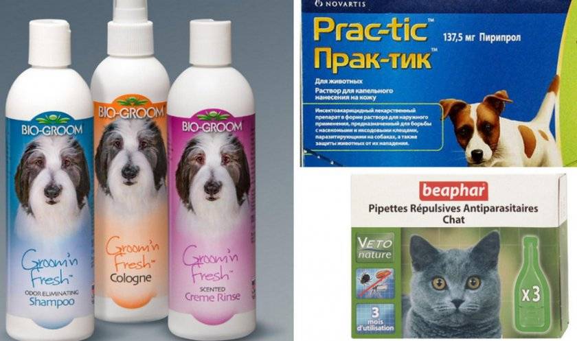 Лучше всего использовать препараты, основным действующим веществом в которых является пиретрин. Из таких можно порекомендовать спреи от «Биогрум» Flea&, Tick, Beaphar 8 в 1. Эти средства считаются наиболее щадящими. Они оказывают минимальный вред для животного. Более сильные лекарства — те, которые созданы на основе синтетических аналогов пиретрина. Наиболее популярными среди них являются Frontline, «Барс», «Акаромектин», «Больфо».