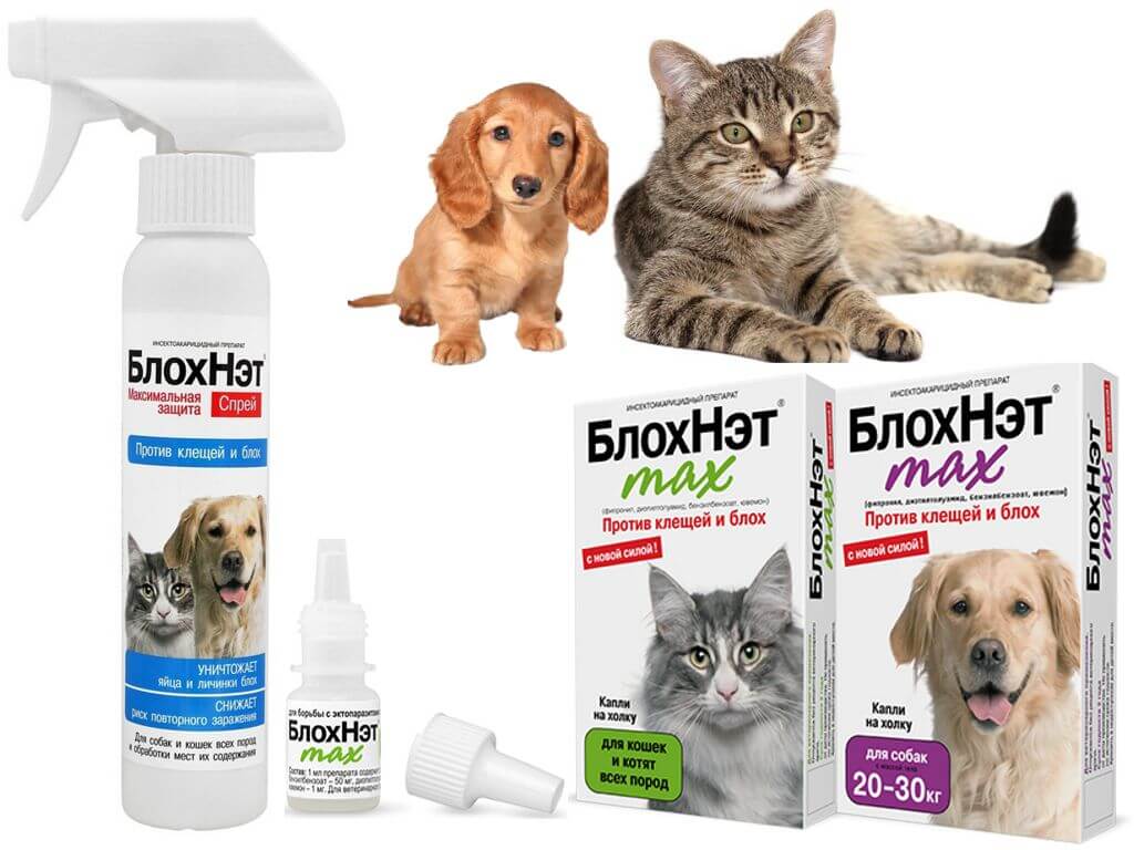 - БлохНэт max для кошек, собак действует подобно спрею. Активные компоненты не проникают в кровоток, сосредотачиваются в сальных протоках, обволакивают шерсть, покрывают кожный покров.