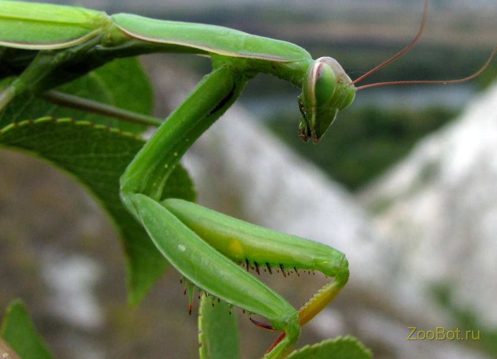 Главная отличительная особенность богомола: хорошо развитые хватательные передние лапы. В общем-то, их размер и шипы красноречиво говорят нам о том, что если уж такой схватил кого-то сопоставимого по размеру, то шансов высвободиться нет.