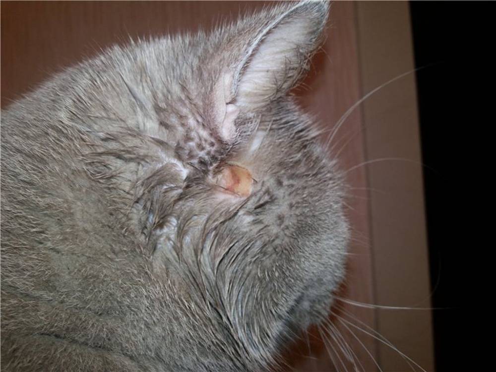 Поражение вызывает сильный зуд, заставляя кошку трясти головой, чесаться. В запущенных случаях появляются бородавчатые наросты в ухе, закрывающие слуховой проход. Лечение производится с помощью специальных мазей (Гидрокортизон, Геокортон).