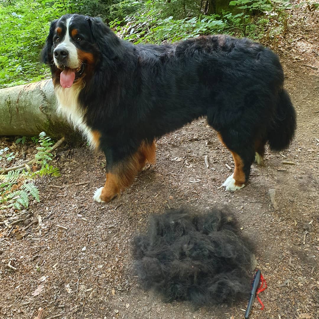Во время сезонной линьки шерсть берна будет повсюду. Ее количество можно уменьшить, вычесывая подшерсток фурминатором. В остальное время регулярное расчесывание также необходимо, чтобы шерсть оставалась гладкой и блестящей. Летом из нее аккуратно выбирают семена сорных растений (репей, резеда) и другой мусор.