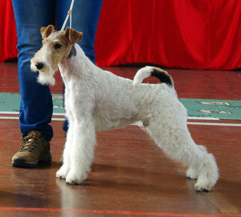 Внешний вид фокстерьера по стандарту – белый с рыжими или черными пятнышками, или трехцветный. Соответственно стандарту породы фокстерьеры имеют клинообразную голову, маленькие, глубоко посаженные глаза, средней длины конечности. Передние лапы близко расставлены, задние — широко.
