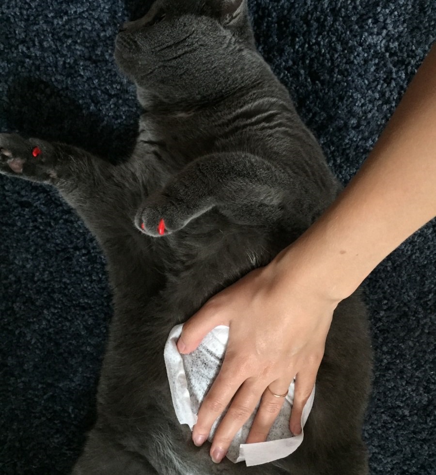 - особенно аккуратно «орудуй» в области лапок, животика и гениталий.