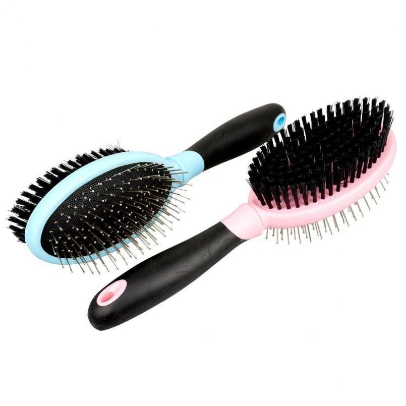 Двухсторонние щетки, как правило, совмещают в себе сразу две модели: пуходер и щетину. С одной стороны расположены металлические загнутые зубья, с другой — щетиновое покрытие. Является универсальным вариантом для любителей домашних кошек.