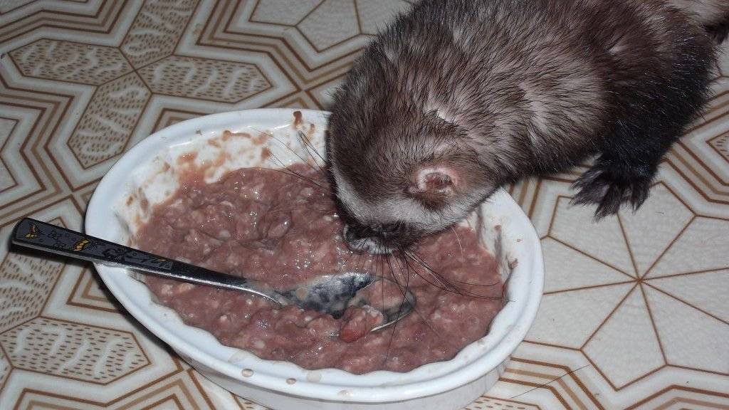 Кормим хорька фаршекашей