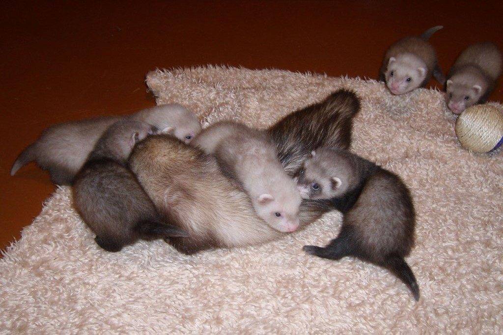 Во время беременности самка хорька находится в уязвимом состоянии, поэтому питание питомца в этот период не должно включать никаких запрещённых продуктов. Классическую схему двухразовых кормлений следует заменить на 3–5 разовый рацион. Не забудьте ввести ежедневную дозу комплексных витаминных добавок.