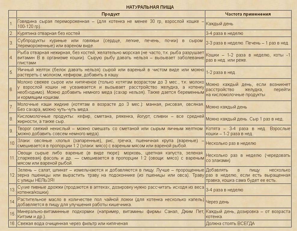 Исключительно молочное питание сохраняется у котят до 1.5месяцев, далее постепенно вводятся различные продукты питания, позволяющие расширить рацион. Примечательно, что при естественном или искусственном вскармливании необходимость докорма существует по причине растущих потребностей молодого животного.