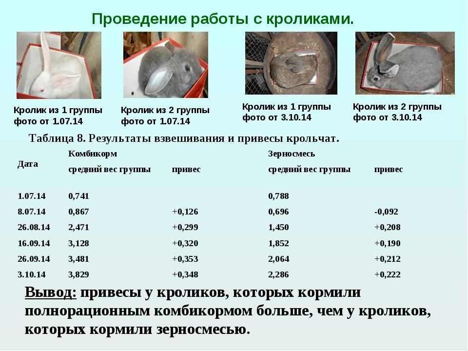 Масса тела крольчонка должна примерно соответствовать нижеприведенным данным — согласно возрасту и породной принадлежности.
