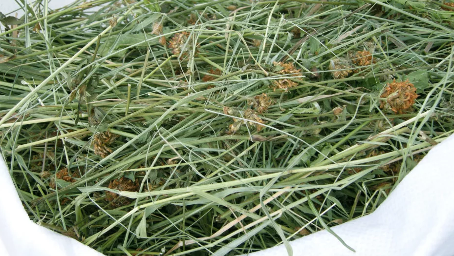 Сено Forbs очень питательно, если оно содержит бобовые и травы, а также гречку, луговой козел и т.д. Перед цветением трава особенно богата витаминами и питательными веществами. Следовательно, сено должно состоять из переднего покоса, скошенного до первого цветения трав. Поздно срезанные травы имеют низкую пищевую ценность.