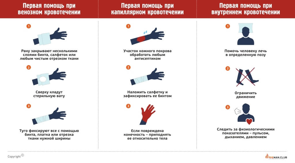 При небольшом кровотечении можно приподнять конечность, зафиксировать ее в состоянии покоя и обработать рану.