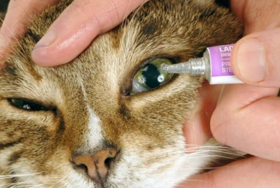 - Также, можно закапать питомцу глаза специальными каплями. Какими именно — необходимо узнать в ветеринарной аптеке.
