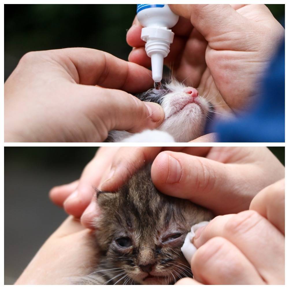 Не подносите пипетку слишком близко к глазу, так как котенок может травмироваться. Каждый глаз протирают дважды за одну процедуру. Курс лечения обычно составляет 7-10 дней.