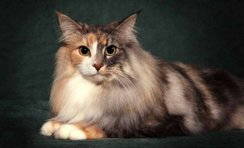 Старинная разновидность, выведенная в Европе. Шерсть плотная, густая, хорошо прилегает к телу. Это полудлинношерстная порода. Не зря это «лесная» кошка: на щеках бакенбарды, на кончиках ушей кисточки, на задних лапах «штаны». К зиме появляется густой воротник.