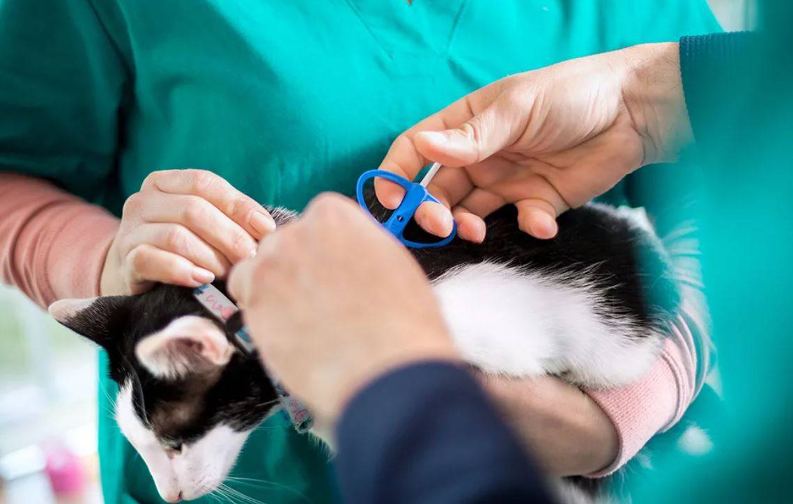 Процедура занимает всего несколько минут: чип вводится под кожу кошки с помощью специального одноразового шприца с более широкой иглой.