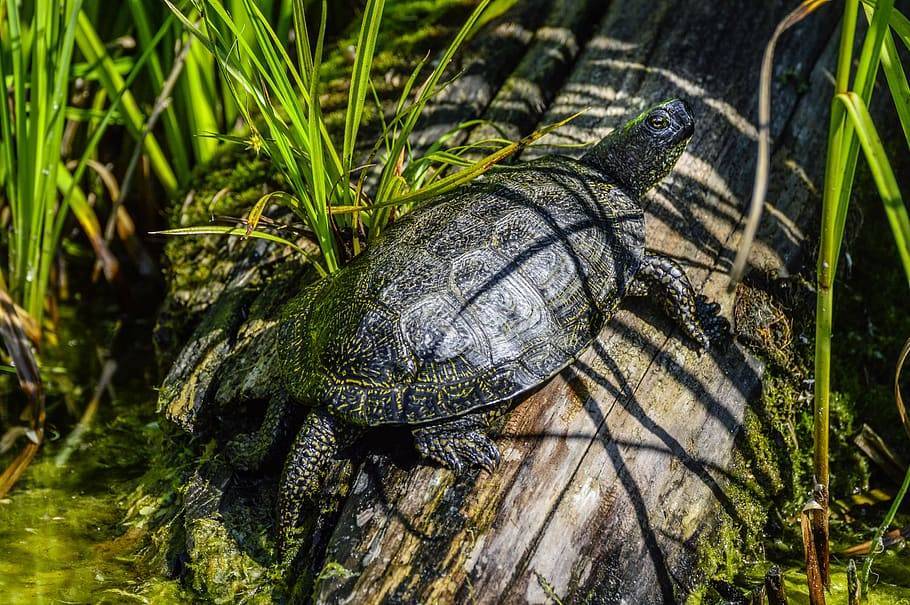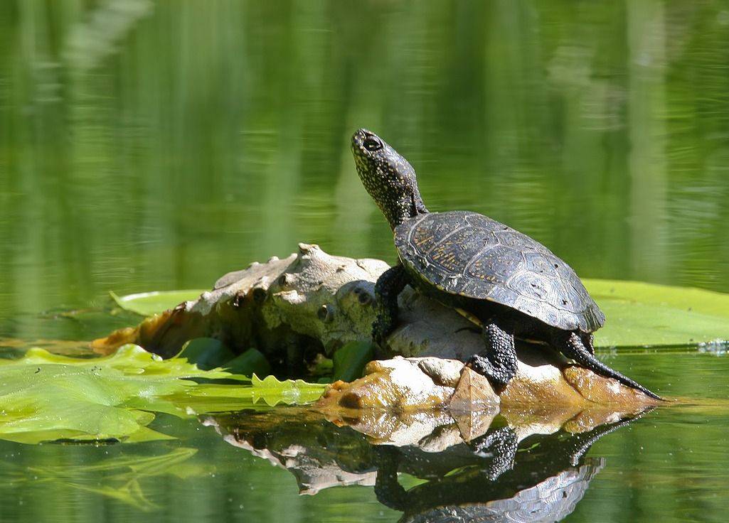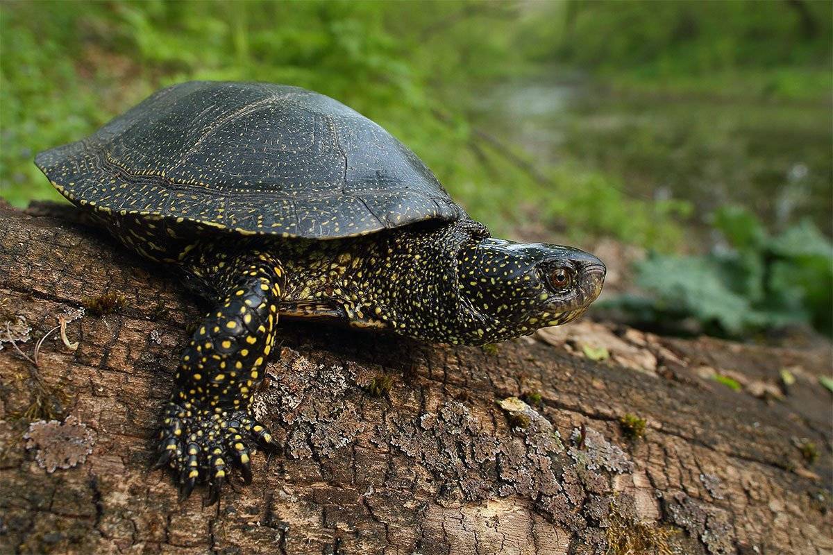 Виды водных черепах, пригодных для домашнего содержания, пополняет еще один представитель животного мира – европейская болотная черепаха. Ее главная отличительная особенность – и панцирь, и тело животного окрашено черным. Лишь местами можно встретить желтые полоски или точки, но они очень незаметны.