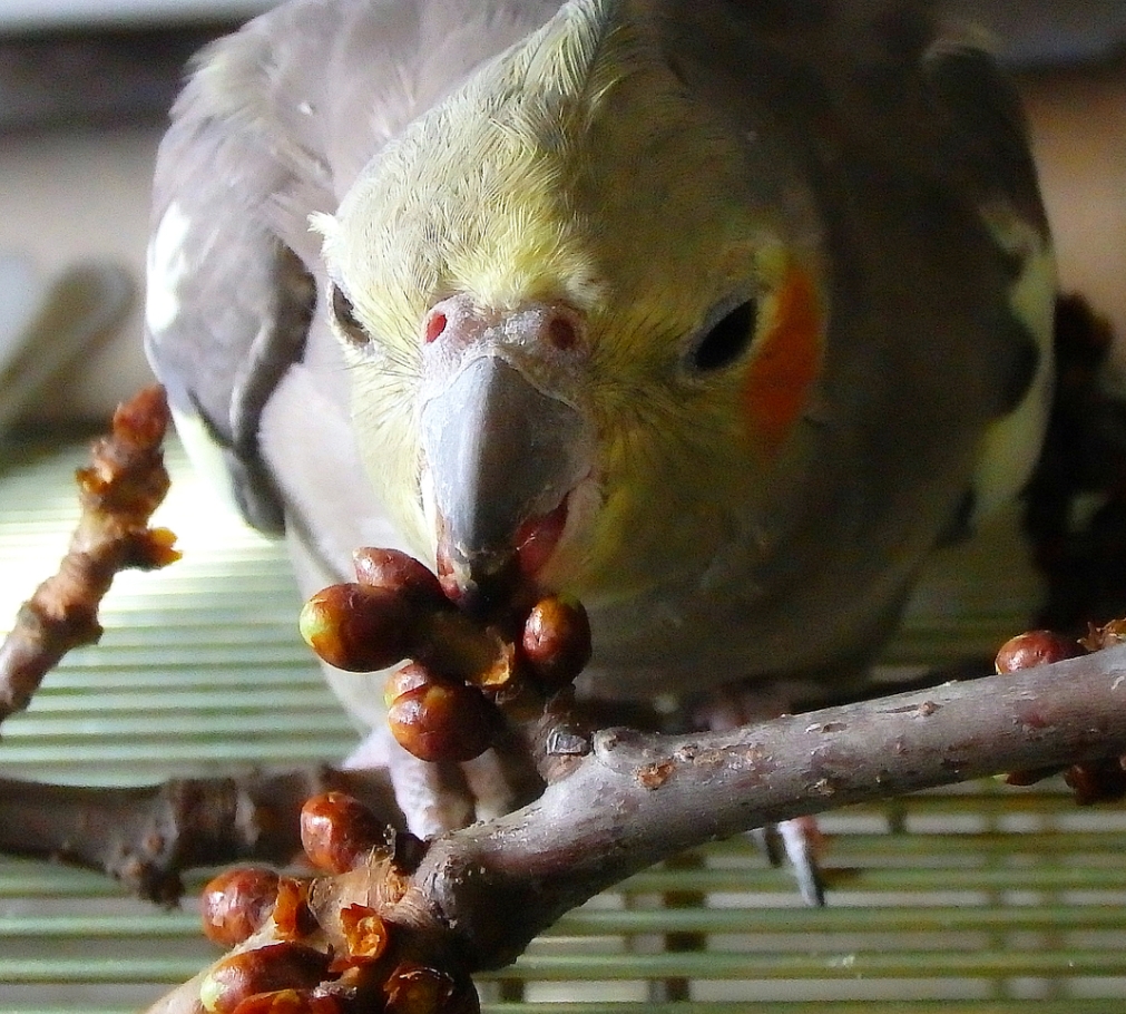 Весной кормление попугая особенно не меняется. По-прежнему основу составляет зерновая смесь, которую дополняют мягким кормом, просом, зеленью овса, тертой свеклой, хвойной и травяной мукой, морковью, кукурузой и орехами. Единственное отличие заключается в добавлении творога, отвара шиповника, зелени и долек цитрусовых.