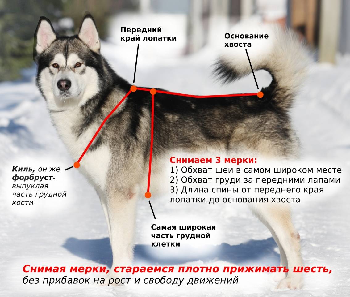 - обхват грудины в наиболее широком месте сразу за локтями передних лап (дополнительно можно добавить пару сантиметров);
