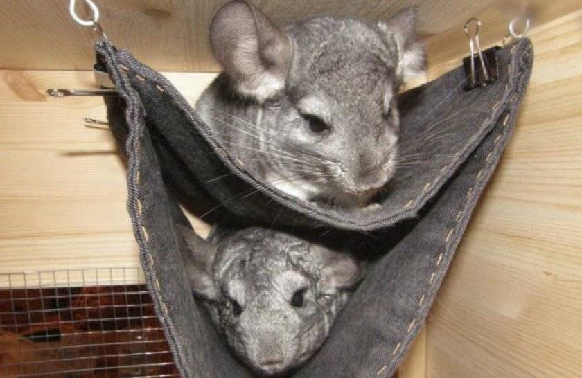 Гамак. Шиншиллы очень любят гамаки. Они используют их как для отдыха, так и для развлечений. Гамаки могут быть разных конструкций, одноярусными и многоярусными, из различных материалов и тканей. Их можно приобрести, однако чаще всего хозяева изготавливают их собственными руками. Однако будьте готовы, что грызуны довольно часто портят гамаки зубами.