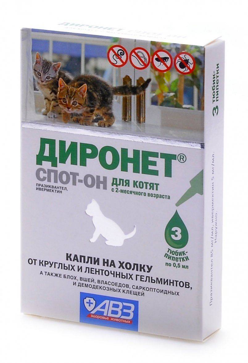 Практически все препараты подобной группы работают по схожему принципу, который можно подробно изучить, прочитав информационный лист и инструкцию к Диронету для кошек, которые можно найти в комплекте упаковки.